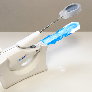 For the use of the CaviTAU® device, 1x enoral AND 1x extraoral gel pad is required per application. The pads must not be interchanged. If the gel pads are visibly damaged, a new gel pad must be inserted during the examination on a patient.